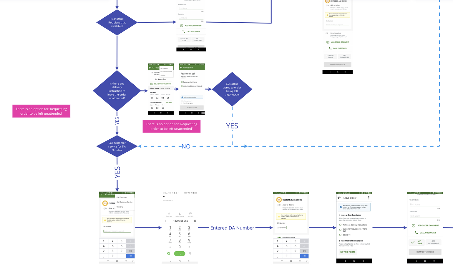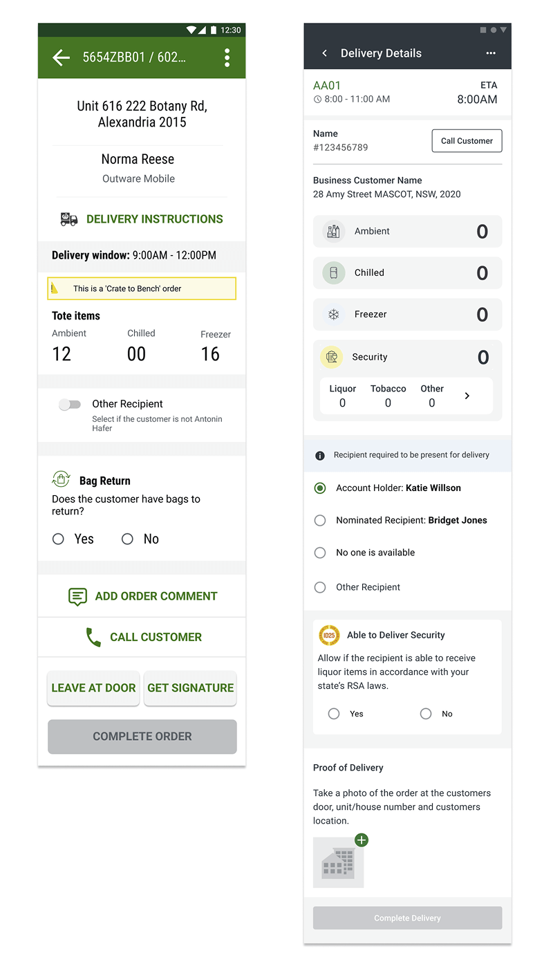 Guiding Woolworths Delivery drivers through the process. Previously Driver would contact customer service for instruction when a delivery didn’t go to plan. Reducing this will impact drivers’ idle time and business costs associated with calling customer service.